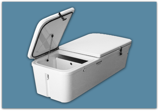 Our Coffin Box comes with a standard lid or a double lid divider. It can be mounted to the deck using our heavy duty stainless steel turnbuckles. The box’s tapered design allows easy maneuverability for active fishermen.