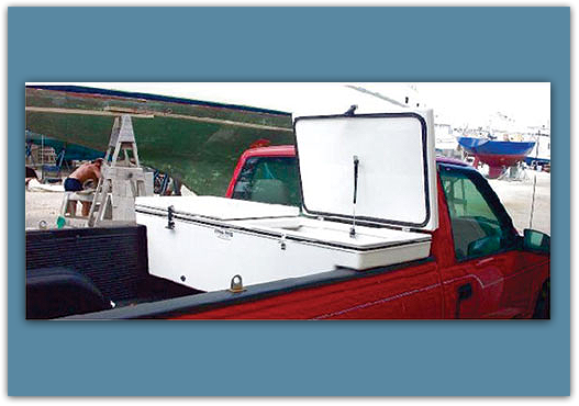 Frigid Rigid has introduced a product line of ice chests that are designed to be mounted in the back of standard size pickup trucks. These truck coolers have all of the design features that make our standard line of ice chests the most efficient coolers made today. In most environments, these chests can keep ice from 7-10 days.