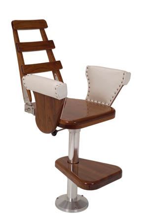 The Classic line of International Series helmseat represents Pompanette starting point with the traditional "Palm Beach Style" ladder-back chair. Designed to accommodate a 2 7/8" pedestal, the industry standard, this seat has become very popular as a replacement for many of the original equipment seats supplied with the boat. As with Pompanette fighting chairs, all versions of the International series helmseat feature through bolt fastened slide assemblies for maximum strength and safety. Chair comes with seat and back cushions Standard seaboard is a fiberglass shown here with up graded teak seat and optional teak footrest.