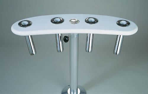 Troll multiple lines hassle-free, by using Pompanette's rocket launcher. The Tournament Series injecton Molded 4-rod Rocket Launcher comes standard with a 30" Aluminum flush mount pedestal