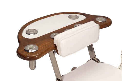 Pompanette INT6931A Teak Reverse Rocket Launcher, 6 Rod Holders, Tray and Drawer - Chair Mount